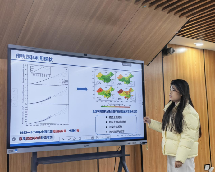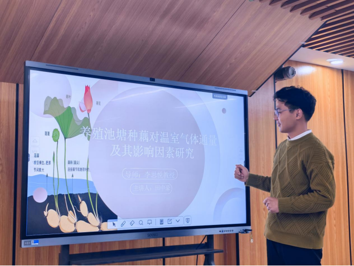 At the forum, the six graduate students took turns to give presentations. Their research covered multiple cutting-edge fields including soil environment, biomedicine, aquatic ecology, urban engineering, greenhouse gas control, and ecological restoration. They shared their research directions, research results, and relevant authoritative professional literature. Their reports were rich and detailed in content, novel and unique in viewpoints, and rigorous and thorough in logic, reflecting the characteristics of interdisciplinary integration and innovative development in the environmental field, and won warm applause from teachers and students present.