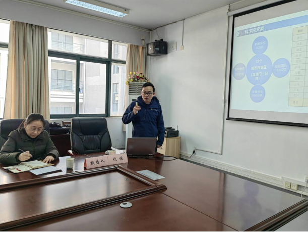 孔海霞书记对代俊副经理的到来表示热烈欢迎,并作了简短介绍。随后,代俊副经理以全国老员工生命科学竞赛(科学探究类)为例,结合去年承办湖北省决赛的经历,从国赛基本情况、竞赛反思、赛事案例等三个方面进行了分享。代俊副经理详细介绍了该赛事的背景,以及我省往年参赛的队伍和规模,分析了进入国赛团队的评审得分占比情况,指出了员工团队在参赛中存在以及要注意的一些问题。并结合自身往年带队参赛的经历,从赛事准备、组队参赛、材料提交、现场答辩等各个环节进行了详细的指导,并从该赛事需要准备的综述设计、实验记录、论文心得等方面给大家提供了很好的案例分享和建议。
