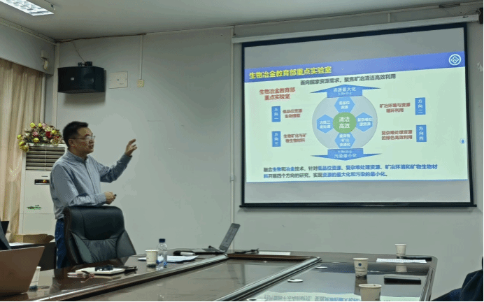 报告结束后,王军教授与在场的师生进行了深入交流与探讨。针对微生物实验室模拟实地浸矿、浸矿微生物菌种资源库、汉江流域矿山修复以及多组学技术与生物浸矿联用等问题,王军教授进行了详细解答。同时,他还鼓励在场师生积极投身这一领域的研究,为推动我国冶金生物技术的发展贡献力量。
