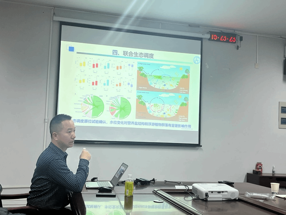 毕永红究员基于梯级水库浮游植物群落结构特点,系统介绍了梯级水库中水华产生的可能原因。他强调,在河流建坝成库改变的水文情势介导下,回水区营养盐和生态环境因子耦合导致浮游植物初级生产力的相对过剩,是水域生态系统的“经济危机”。此外,毕永红研究员详细阐述了应用于水华控制的物理、化学、生物等方法的成功案例,并对构建梯级水库联合生态调度技术体系提出了一定的展望。会议最后,毕永红研究员详细回答了与会者提出的问题。