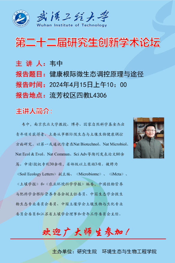 【研究生创新学术论坛】报告题目:健康根际微生态调控原理与途径