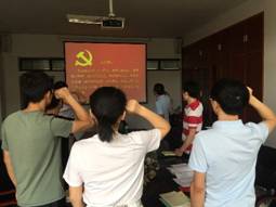 活动一开始,全体党员起立,奏唱国歌,重温入党誓词,并诵读党章总纲部分内容。