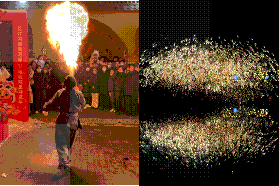 除此之外,实践团成员还去看了著名的陕州灯会,今年灯会的点灯仪式在三门峡陕州地坑院民俗文化园举行。陕州地坑院作为三门峡独特的文化景观,堪称“地平线下古村落,人类穴居活化石”。灯会是一场融合了传统文化与现代科技的新年盛宴,其中不仅有经典传统的花灯与象征美好的烟花,还有沿黄九省区超过100余项的国家级非遗项目在灯会期间展示,包括打铁花、川剧变脸等动态展演,以及蜀绣、潍坊风筝静态展示,展现了黄河流域的文化多样性也让实践团成员们感受到了浓浓的民俗风情。