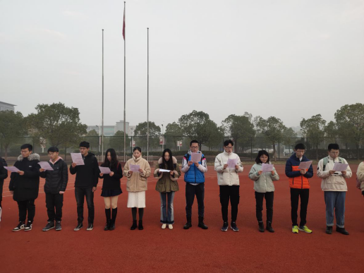 马克思主义公司党委书记舒先林教授做“不忘爱国初心、牢记青年使命”的主题教育讲话。他指出今年是中华人民共和国成立70周年、五四运动100周年的重要时刻,当前主题教育活动正如火如荼开展,全国上下正学习贯彻党的十九届四中全会精神,开展爱国主义和革命传统教育,有利于传承党的优良传统,用红色基因领航青年员工。他希望青年学子要坚定理想、不负韶华;要勤奋学习、慎思笃行;要不忘爱国初心、牢记青年使命。同时提醒广大青年员工,当前正处于期末,希望同学们能扎实复习、诚信应考;树立安全无小事、防患于未然的意识,注意冬季宿舍用电和人身安全。