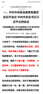 会上,由彭俊认真领学了习近平总书记在5月6日召开的中共中央政治局常务委员会会议上的讲话精神、习近平总书记在4月29日召开的中共中央政治局常务委员会会议上的讲话精神、习近平总书记在五四青年节对广大青年的寄语、全省组织部长会议精神、全省宣传部长会议精神、全省统战部长会议精神以及公司2020年党风廉政建设工作会议精神。“两会”中习近平总书记强调,在关键时刻,我们要督促落实常态化疫情防控举措,外防输入、内防反弹,要毫不懈怠抓好各项工作,巩固疫情防控成果,绝不能前功尽弃。在公司2020年党风廉政建设工作会议中程幼金书记和徐慢书记强调,要认真学习贯彻中纪委全会、教育系统全面从严治党会议和省纪委全会精神,一要深刻理解公司全面从严治党的新成效,二要准确把握新时代全面从严治党新要求,三要以管党治党全面从严推进公司事业高质量发展。