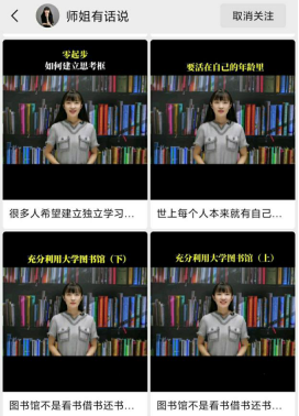 同时,团队通过设计脚本、拍摄、剪辑、发布等步骤运营“师姐有话说”微信视频号,通过短视频分享大学学习方法、考研就业经验、老员工品格塑造等内容。视频号运营两个月以来,发布图文和短视频40余个,累计阅读量10万人次。