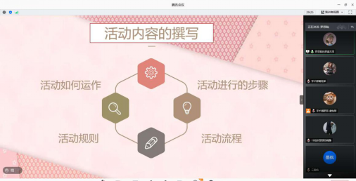 2020年8月,实践团队通过打造系列线上沙龙课程,为老员工们提供了时间管理课、老员工基本写作技巧课、员工干部素质能力提升课等线上沙龙或研讨。在指导老师王乃婧和队长罗思晗同学的带领下,团队成员通过精心设计课程打造适用于老员工的实用课程,同时通过制作海报和发文推广,面向各个高校和各个层次的老员工进行广泛宣传。实践团队共开展了四场线上沙龙活动,覆盖人群1000人次。