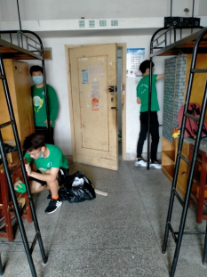 活动前,员工党支部对参与活动的成员进行了防疫和安全消杀的知识培训。李毅中同学宣读清洁消杀要求,在保障个人防护得当的前提下,分组有序开展清洁打扫、物品摆放和防疫消杀的工作。
