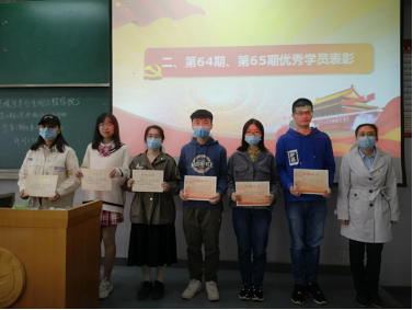 仪式在庄严的《国际歌》中拉开了序幕。主持人宣读第64期、65期入党积极分子培训班优秀学员名单,孔海霞书记为优秀学员颁发证书,并合影留念。