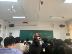 韩新才向同学们介绍了如刷单、导师理财、虚拟平台、游戏账号等多种诈骗类型,针对各种诈骗类型进行了案例分析,并联系同学们的日常生活讲解防诈知识。