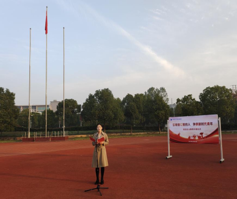 升旗仪式上,公司党委副书记郑冬洁发表国旗下的讲话。郑冬洁指出,作为新时代老员工,应当怀有一颗爱国之心,铭记历史,不忘为人民为祖国做出贡献的先辈们,时刻以祖国的强盛为己任。在学党史中激发信仰、汲取力量,与新时代同向同行、共同前进。并向全体同学提出三点希望:一是希望同学们坚定理想、树立志向,做担起中华民族伟大复兴重任的有为青年;二是希望同学们锤炼品德、提高站位,胸怀人民和祖国,做中华优秀品德文化的传承者、弘扬者;三是希望同学们务实笃行、勇于创新,在实践中增经验、悟真知,与时并进,争当创新先锋。