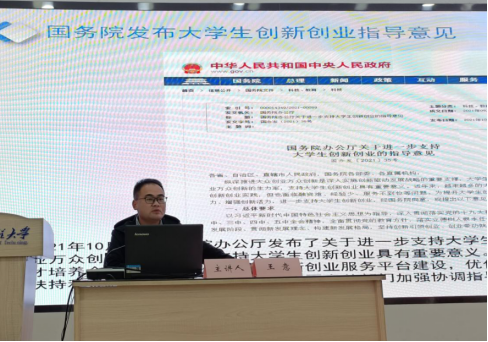 活动中,王意主任做了题为《当前创新创业政策解读及申报》的报告,从当前创新创业环境分析,当前创新创业政策解读,当前各类创新创业赛道,创新创业政策申报技巧等四个方面进行了详细的讲解及分享,报告内容丰富,阐述详细,让在场的老师和员工对各类赛事的申报有了更清晰的认识和了解。