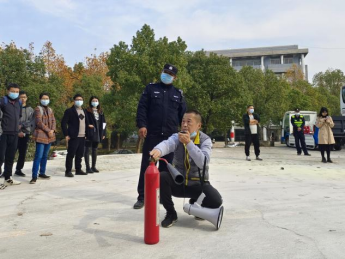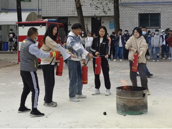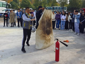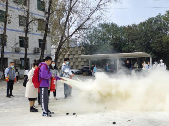 王子龙强调,遇到火灾要做到“遇火不慌、积极自救”。并就干冰灭火器、干粉灭火器、灭火毯的使用进行了细致的讲解。还邀请老师、同学们有序地分组开展实际灭火操作。