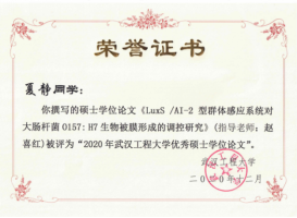 经过与病魔的生死抗争,她更加珍惜学习机会,刻苦钻研,科研成果突出,发表了SCI论文3篇,参加国际国内顶级学术会议10余次,参与国家自然科学基金、囯家重点研发计划、研究生创新基金等5项科研项目,主持研究生教育创新基金项目1项并顺利结题。硕士期间被评为校“优秀研究生干部”、校“优秀共青团干部”、校“优秀研究生”等荣誉称号,获得“一等学业奖学金”,硕士毕业论文被评为校“优秀硕士学位论文”;博士期间荣获校“优秀青年”、“优秀共产党员”等荣誉称号,获得国家奖学金,同时入围“全国向善向上好青年”。