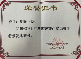 作为一名中共党员,始终以优秀党员的标准要求自己,在员工中充分发挥先锋模范作用。先后担任研究生党支部副书记、书记,疫情期间,她创新工作模式,将临时党支部建立在科研团队和云端上,保证组织生活不断线,团队工作得到副省长肖菊华等领导的肯定。并率先发出倡议,成立员工党员战疫宣讲团,开展防疫知识宣讲、分享居家学习经验等;带头录制宣讲短视频,在公司新媒体平台开设党员“说、学、做”等专栏;推送原创视颏作品50余个。支部党员28人在家乡积极投身志愿战疫服务,支部成员马一鸣原创战疫音乐作品被学习强国转载20余万次;成员魏新月被评为新疆乌图布拉格镇“战疫先锋”,成员杨子琼、任慧婷被评为校“抗疫先进个人”。夏静所在公司被评为公司“抗疫先进单位”,夏静个人被评为校“优秀共产党员”。