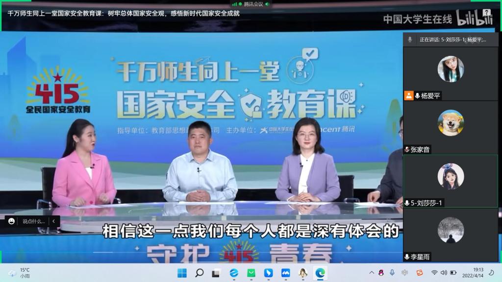 公司以集中和分散、线上和线下的形式,组织员工错峰观看学习以“千万师生同上一堂国家安全教育课”为主题的公开课、收看“国家安全大宣讲”决赛现场讲演比赛活动、线上参观全国教育云基地等。