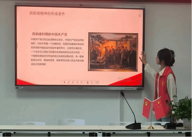 随后,志愿者讲解了谦虚谨慎、艰苦奋斗、敢于斗争、敢于胜利、依靠群众、团结统一的西柏坡精神,它是党直接从事武装斗争20余年积累了丰富斗争经验的产物,是党在长期革命斗争中锻造的革命精神的一次大升华,始终激励着中华儿女万众一心、砥砺前行。志愿者在新时代传承弘扬西柏坡精神,将红色革命种子深植于每一位家长孩子心中,成为激励一代又一代中华儿女为振兴中华而拼搏奋斗的精神支柱。