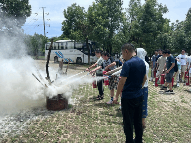 随后,公司邀请了公司保卫处欧阳诗虎老师、王子龙老师指导开展消防现场演练。他们细致地讲解了消防安全的重要性、火灾隐患的形成和特征、火灾的发生和特点、预防火灾的方法以及逃生面罩、干粉灭火器与灭火毯等消防器材的使用等消防安全知识,给在场同学进行了专业灭火示范,并邀请同学们逐一动手进行操作,让大家对如何打开灭火器、如何正确的使用灭火器有了深刻认识。