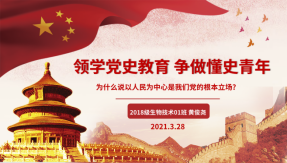 2018级生物技术专业黄俊尧同学以“为什么说以人民为中心是我们党的根本立场”为主题,从中国共产党成立一百周年历史进程出发,举出中国共产党在革命战争年代和社会主义建设时期践行“全心全意为人民服务”的宗旨的实例,进一步为大家厘清了中国共产党人的宗旨和使命。