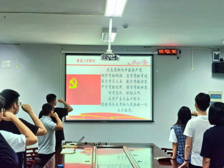 会议伊始,组织委员通报到会情况,接着全体党员集体奏唱国歌并重温入党誓词。