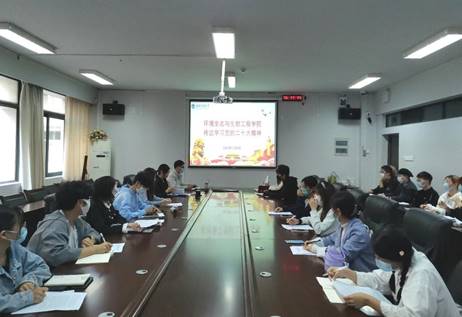员工党员代表研究生第二党支部副书记卢潼、本科生第二党支部副书记黄雨泽、2020级生物技术01班邓龙芝、2020级环境科学01班殷美绮分别以“百年再出发,争做追梦人”、“做有理想敢担当能吃苦肯奋斗的新时代好青年”、“激扬青春梦,奋进新征程”、“奋力谱写全面建设社会主义现代化国家崭新的篇章”为主题分享了学习党的二十大精神的感悟,她们表示将继续深入学习领会党的二十大精神,以党的二十大精神作为未来学习工作的航向,以青春之我、奋斗之我,为民族复兴铺路架桥,为祖国建设添砖加瓦,努力成长为有理想、敢担当、能吃苦、肯奋斗的新时代好青年。