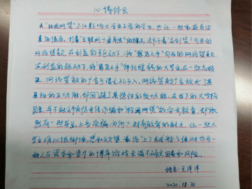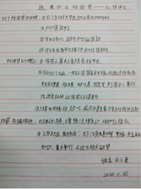参与此次讲座,同学们对于非法校园贷的了解更加深刻,对金融风险有了初步认知。田小康、黄仁华、王洋洋同学就此次活动发表了各自的心得: