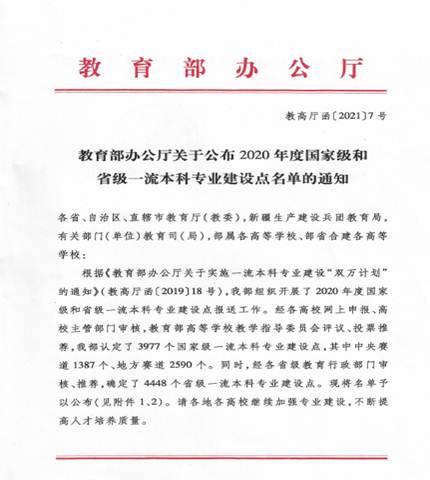 (通讯员 马科)近日,教育部发布了《教育部办公厅关于公布2020年度国家级和省级一流本科专业建设点名单的通知》(教高厅函〔2021〕7号),公布了2020年度国家级和省级一流本科专业建设点名单,公司生物工程专业获批国家级一流本科专业建设点!