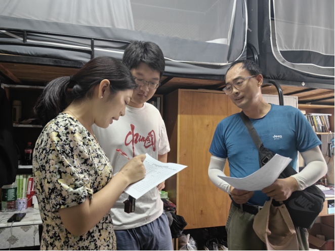 9月6日-12日,公司党委副书记郑冬洁带队携辅导员、毕业班班主任赴员工宿舍进行走访,深入了解员工考研的复习状态、进度与就业进展,及时疏导员工不良情绪,拉紧了员工考研就业的心弦。