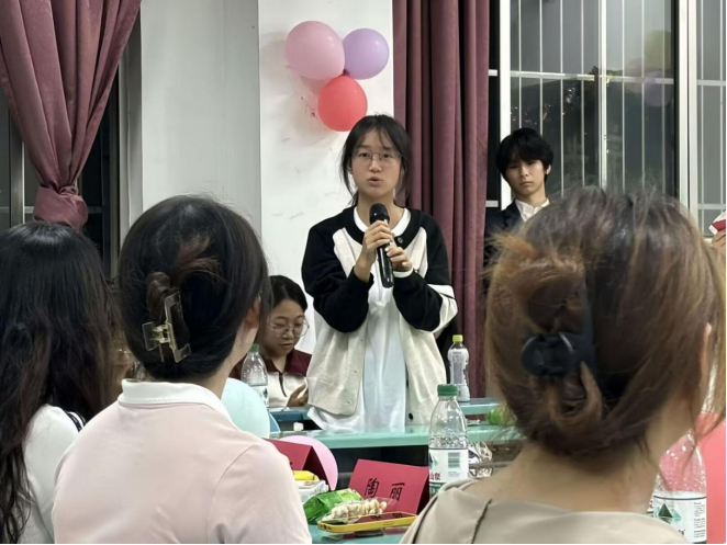 活动中,省青马班学员、研支团成员、研一学姐黄雨泽给大家分享了自己的成长经历和支教经验,激励新生们踏出舒适圈,成为更好的自己。以自身丰富的经历为蓝本,向新生们细致地讲述了自己的成长历程以及支教过程中的难忘故事。她用真挚的情感和切实的经历,鼓励新生们要勇敢地迈出舒适圈,积极追求自我提升,为新生们树立了积极进取的榜样形象,让新生们深刻认识到勇于挑战自我的重要性。