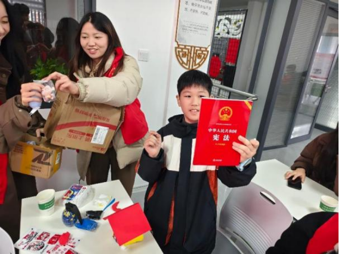 3月16日下午,公司“红细胞”志愿服务队联合法商公司(知识产权公司)、艺术设计公司、马克思主义公司走进文苑社区开展“学雷锋 树新风”文明实践活动。雷嗣超以《弘扬雷锋精神 爱心奉献社会》为题,讲述“钉子精神”等经典故事。焦紫怡开展《雷锋故事润童心 宝贝行动传爱心》主题宣讲,领读雷锋经典日记。张尚辉则将《宪法》《民法典》巧妙转化为“身体红绿灯”等趣味游戏。艺术设计公司的志愿者们组织小朋友们一起绘制雷锋主题手抄报,用色彩斑斓的画作传递雷锋精神。