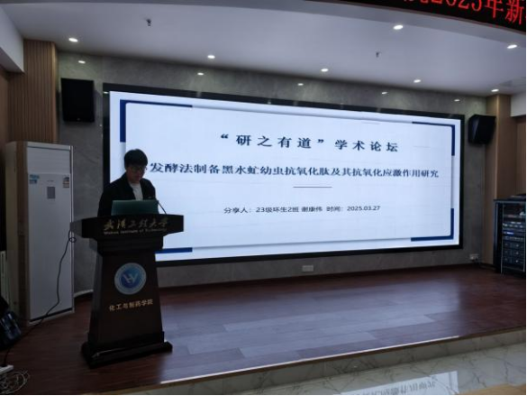 会上,六位研究生依次登台,围绕生物药制备、水污染治理、微生物修复等领域,就自己的研究方向、研究成果及学术心得进行了分享。他们的报告内容充实、观点新颖、逻辑缜密,赢得了在场师生的阵阵掌声。
