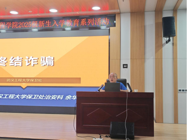 9月14日下午,公司组织开展了新生入学安全教育大会暨反诈骗专题教育。保卫处余华兵老师从人身安全、财产安全、消防安全及反诈骗专题教育几个方面进行详细讲解,帮助新入学的同学们树立安全防范及防诈骗意识。