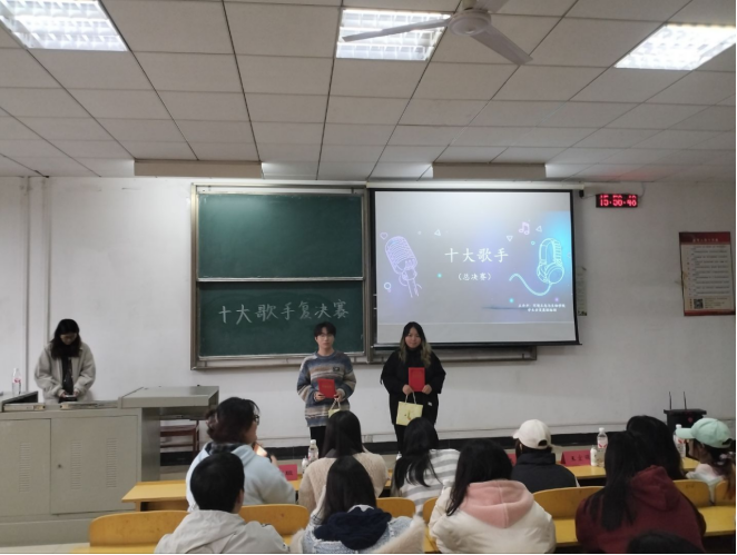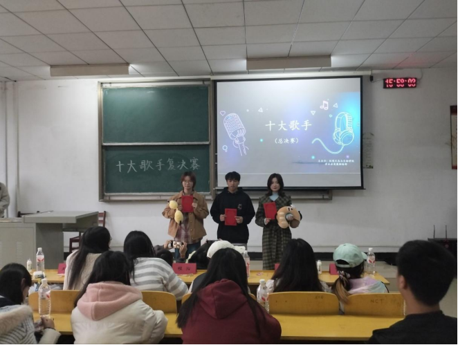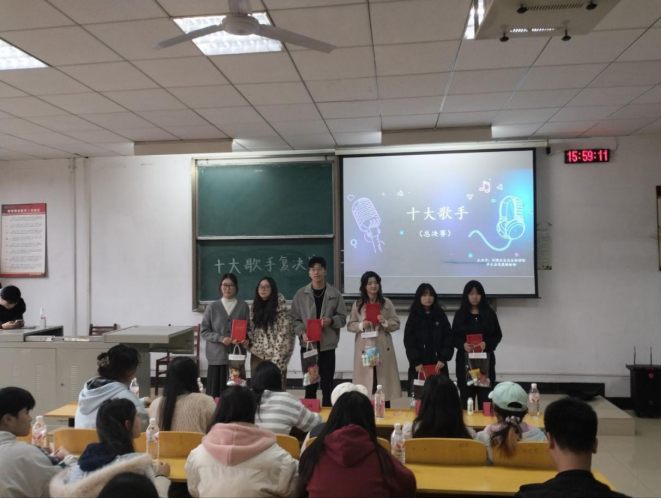 本次比赛分复赛和决赛两轮进行。第一轮比赛现场氛围感拉满,10组选手依次登台,用极具感染力的演唱为现场师生带来了一场精彩纷呈的视听盛宴。其中,孙毅玲、戴静文带来的《踮起脚尖爱》婉转悠扬、李双润的《手写的从前》余韵悠长、李卓莹的《陪你长大》温情脉脉、杨浩燃的《动物世界》张力十足、秦雄演唱的《小胡同》细腻深沉、兰飞扬的《路过人间》情真意切、何颖、刘洋、陈美玲三位同学合作的《生活倒影》直击人心、刘雨青的《鹿 be free》声动梁尘、徐静茹的《有一种悲伤》深情缱绻、杨燕萍同学带来的《my heart will go on》空灵悠扬,展现出扎实的演唱功底。选手们在音准把控、情感表达与舞台表现上尽显环生学子的风采与功底,经过激烈角逐,五组选手凭借出色的综合表现脱颖而出,成功拿到决赛入场券。