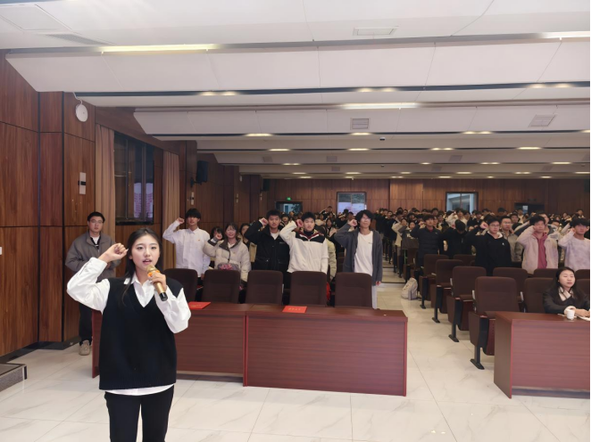 新学员代表郑佳妮带领全体学员庄重宣誓,誓言中饱含树立远大理想、胸怀国之大者、励志成长成才、凝聚前进力量的坚定信念。