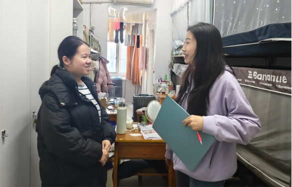 1月15日,公司联合校团委、保卫处开展宿舍走访,各年级辅导员与班主任参与。走访中,老师们细致查看宿舍卫生环境与安全状况,重点排查违规电器、私拉乱接电线等安全隐患,同时了解大家假期计划与返乡安排,叮嘱即将离校同学务必妥善保管个人物品,关闭电源、锁好门窗;留校同学严格遵守宿舍管理规定,注意用电、防火及财物安全,保持信息畅通,遇到困难及时向公司反映。这传递了公司对员工的深切关怀,将安全教育落实到员工生活的每一个角落。