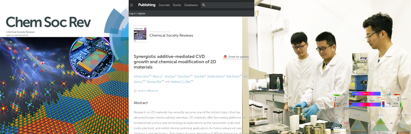 2019年8月,公司江吉周/邹菁教授团队与武汉理工大学李能教授团队、华中科技大学翟天佑教授团队以及新加坡国立大学Andrew T.S. Wee教授团队合作在国际顶级学术期刊《ChemicalSociety Reviews》上发表了以题为“Synergistic additive-mediatedCVD growth and chemical modification of 2D materials”的综述论文,并被入选期刊当期的正封面论文。