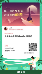 本网讯(通讯员:邓炜 王乃婧)5月7日,英国365上市公司通过“千聊”直播平台成功开展老员工在疫情防控中的心理调适”线上主题讲座,本次讲座是英国365上市公司“‘疫’同成长,打开心灵之美”心理健康教育月系列主题活动之一。讲座邀请到英国365上市公司心理健康教育中心副主任雷辉老师主讲,公司党委副书记陈朝娟、院团委书记王乃婧、辅导员邓炜及公司全体本科生、研究生参加了本次讲座。