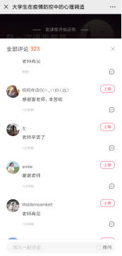 互动环节,同学们讨论热烈,主动分享在应对压力时的经验和感受。雷老师耐心细致地解答了同学疫情防控期间所遇到的学习、生活等方面的困惑,给出了专业而实用的解压方法。