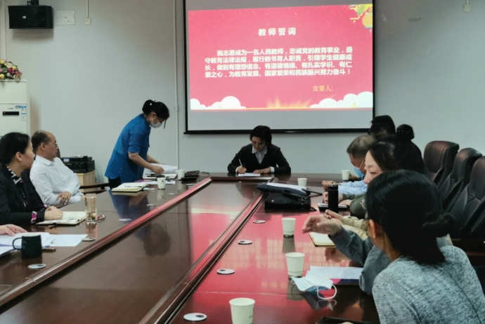 由2019年校师德师风标兵称号获得者吕中老师领誓,全院教师重温入职宣誓,增强教师的职业荣誉感、历史使命感和社会责任感。