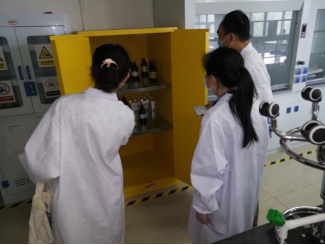 本次检查对公司办公室、一号实验楼、大化工1号楼、大化工2号楼及创新创业基地逐一进行了检查,对大型仪器使用管理、危化品管理、通风设备、用水用电安全、仪器设备布置摆放、实验废弃物的处置、实验室的卫生等情况进行了排查。检查过程中,检查组仔细查看各个实验室的具体情况,重点对上个月环境卫生检查不达标的实验室进行了回头看,检查实验室整改情况,并详细询问实验室人员有关安全防范措施,对发现的问题进行详细记录。
