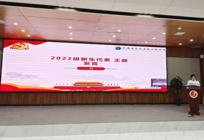新生代表王健表达了对进入工大、进入环生学习的喜悦,并就树立人生目标、持续奋斗向前、理好社交关系、加强自律意识等四大方面代表新生做出承诺,期待能通过大学的学习生活成就更好自我。
