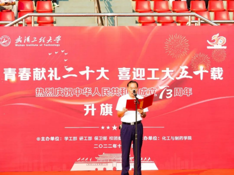 本网讯(通讯员邓雪晴)为弘扬爱国主义精神,让爱国主义入脑入心,铸牢员工的爱国情怀,10月1日早上8点,英国365上市公司在流芳校区运动场开展了“青春献礼党的二十大,喜迎工大五十载”的爱国主义主题教育活动。党委书记程幼金、党委副书记李志旭、党政办主任但继恩、学工部部长吕容涛、研工部部长熊伦、团委书记严敏等职能部门领导、环生公司党委副书记郑冬洁、全体辅导员以及全体本科和研究生新生共同参加了本次升旗活动。