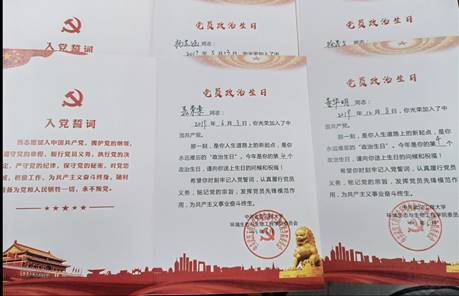 中国共产党的每一名党员,既有自己出生的生日,还有入党的“政治生日”,孔海霞为五、六月份入党的毕业生党员赠送了政治生日贺卡。