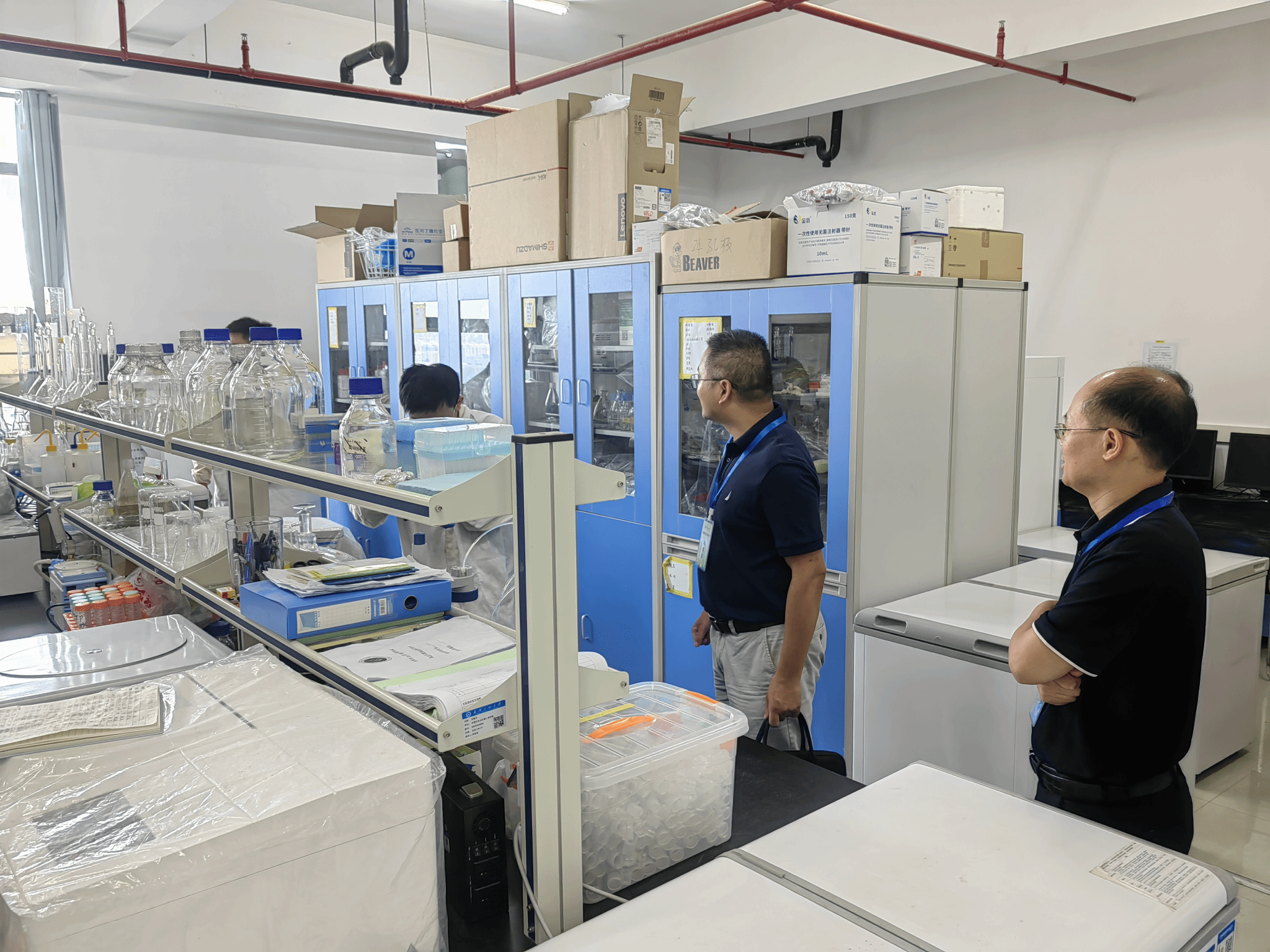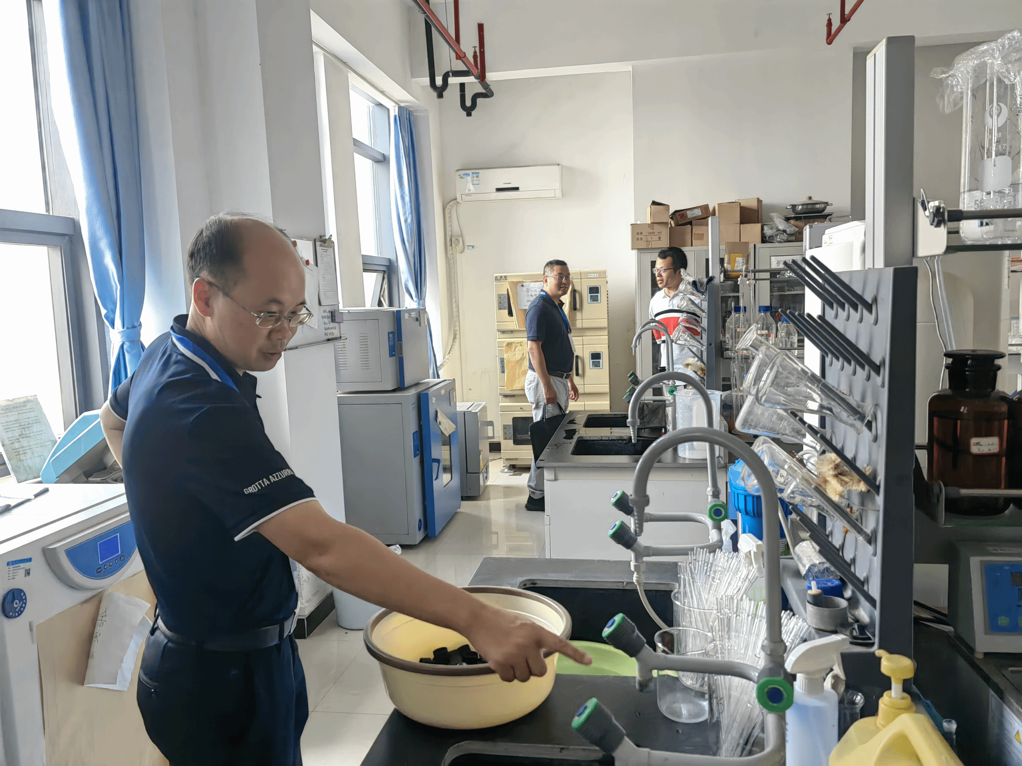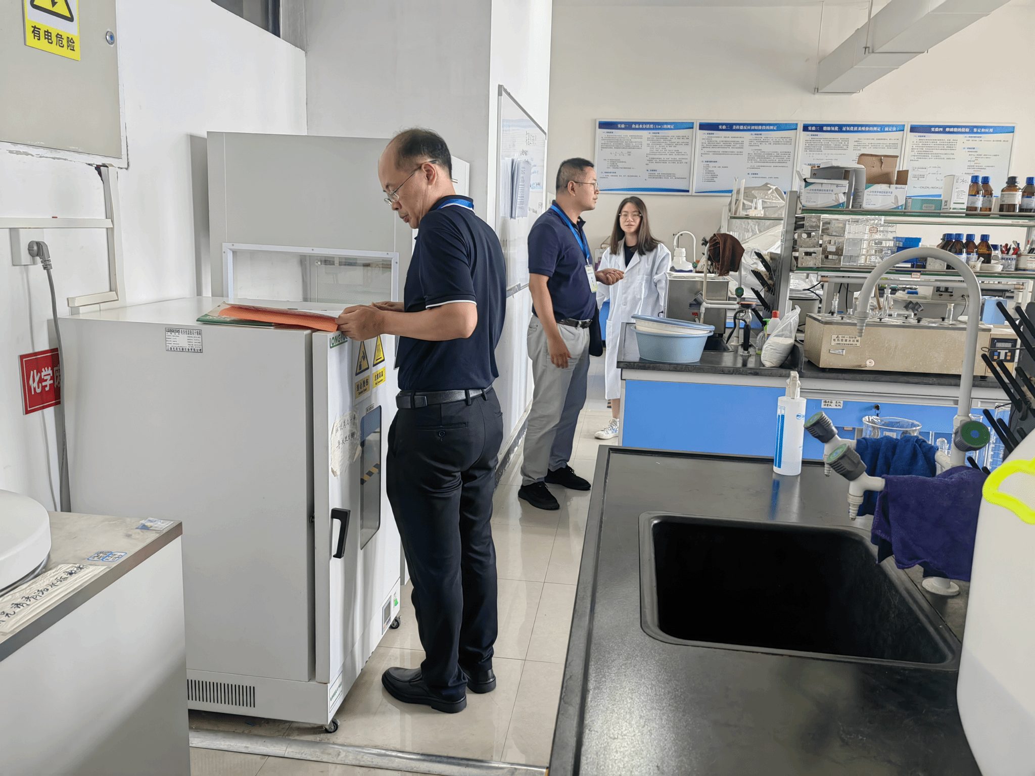 检查组对公司部分实验室的卫生、化学试剂及危化品管理、气体钢瓶存放和实验室消防通道等方面进行了详细检查。检查中发现,部分实验室仍存在一些安全隐患,主要集中在危化品管理不规范、实验室安全日志填写不规范、气体钢瓶存放不合理、用电不规范等。