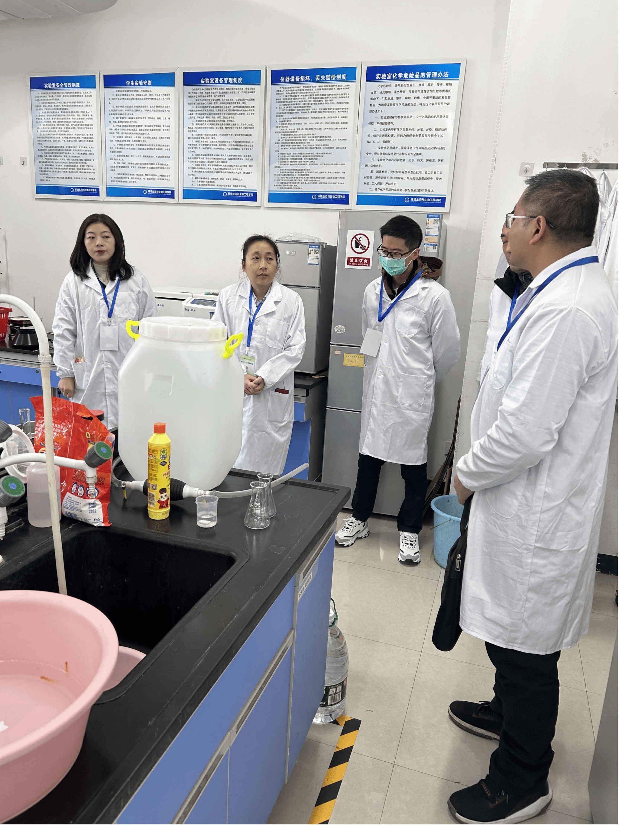检查组一行对公司办公室、一号实验楼、大化工1号楼、大化工2号楼及创新创业基地逐一进行了检查,仔细查看了各个实验室的具体情况,详细询问实验室人员有关安全防范措施,并对发现的问题进行详细记录。重点检查实验室病原微生物、危化品管理、特种设备使用、高压气体钢瓶放置、实验室环境卫生状况、实验室安全日志记载等情况。